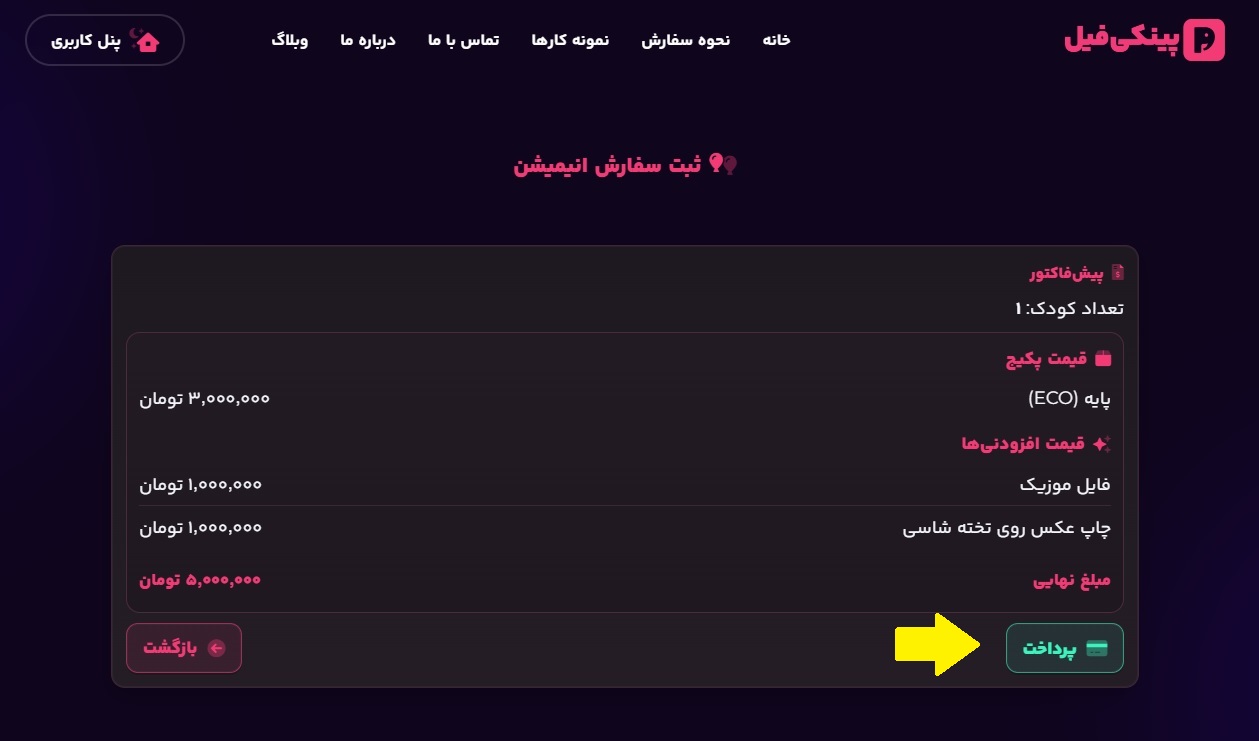 مراحل سفارش ویدیو اختصاصی از سایت پینکی فیل